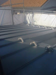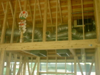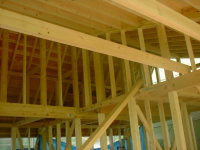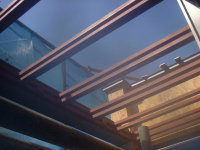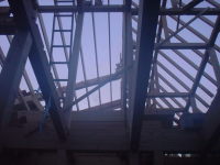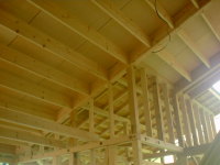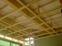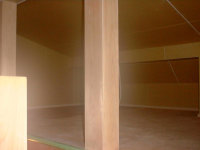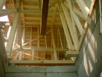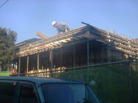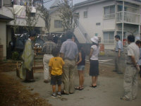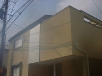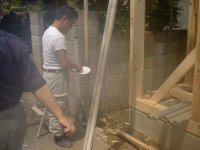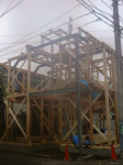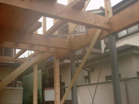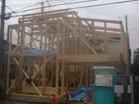 既存の木造住宅を鉄骨フレームで耐震補強をし、かつ、内部の間取りを変更するリフォーム工事です。木造住宅なので、耐震壁を撤去し、反対側に部屋を作ることで、上階の荷重を受けるものが無くなります。その為に鉄骨材で1階部分に構造フレームを構築し、1階部分はフレキシブルな間取りとする事ができます。既存建物は暗いイメージがあった為、木の外壁を仕様し、明るい玄関としてみました。木の香りは森の中に居るような感覚がおこり、何か自然に戻ったような感じを受けます。耐震補強をすると共に、住宅のイメージをガラッと変える事ができた工事でした。また、この建物の寄棟屋根を一部撤去し、屋上に家庭菜園兼スカイテラスを造る計画も進行中です。
