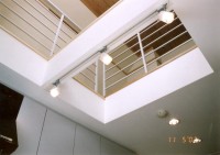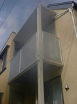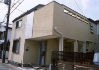 この建物は2世帯住宅+スタジオ(音楽編集室)で、最初の案は2世帯それぞれの玄関を設けた地下1階地上2階建てで提案いたしました。いろいろと試行錯誤していき、クライアントとも話し合って玄関ホールは1箇所でいいとの事で進め、工事も始まり、竣工完成しました。その後、1年もしない内に工務店が再工事し、2階に行く外階段と玄関を設け、それぞれの専用玄関となりました。其の当時はショックだったですね。もう少し、こちらの考えを押し通してもよかったのではないかと。。。反省しましたが、それでも、結果、いろいろな過程があってそうなったのであり、二世帯住宅は難しい、いや、住宅建築は難しいと改めて感じた工事でした。最初の作品にこのような経験をした事を今では、良かったのだと思い、この教訓を基に現在に至っております。