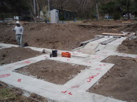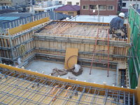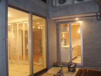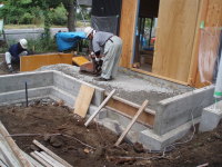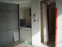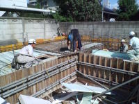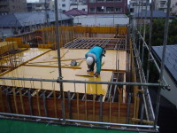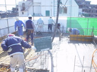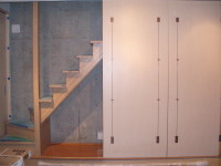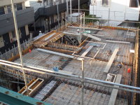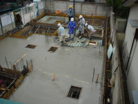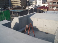 3番目は、東京調布市の布田に土間とギャラリーのある家という3階建ての集合住宅が2007年8月に地鎮祭が行われ念願である着工をし、2008年3月、ついに完成いたしました!!企画から5年と三ヶ月が経ち、感動そのものです。WRC構造でコンクリート打ち放し仕上げが、いかに綺麗に打てるか、職人さん達が一番苦労した部分です。施工は吉祥寺の滑ロ二さんに請け負っていただき、監督の林さんは私と同い年です。工事中はお互いのアイデアやお施主さんのご理解もあり、三者が苦労して作り上げた作品となりました。お施主様が楽しく暮らしていけるように・・・竣工後どのように魅力を増していくか楽しみです!