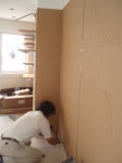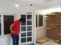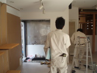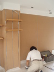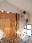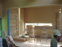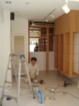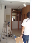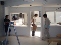 次に、喫茶店→ブティックにする改装工事です。静岡市の古庄という静岡鉄道の私鉄沿い商店街の一角に計画されたこのブティックは洋服・アクセサリー・子供服や雑貨などいろいろな小物を含めて販売するショップです。一方、デザイナー等の作品や工芸品などを展示するレンタルスペースも設置する計画です。木と白いペンキの壁と天井。ローコストであり、友人であるオーナーと塗装している様子も!。コンセプトは老若男女・様々な人が交流し、楽しみ・憩える・出会いの場所であるように・・・我がアトリエの紹介コーナーもあります!是非、見に来てください。
