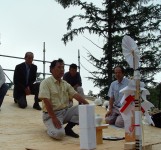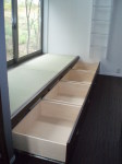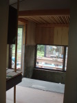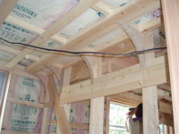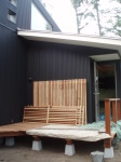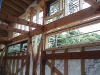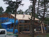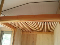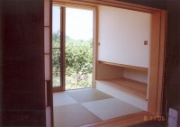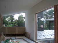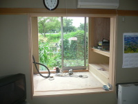 ここでは、西側の小海線や空の風景をのんびりと眺めていたり、風や陽を感じたりできて、そして、畑仕事の合い間の寛ぎの時間や、家族の会話やお客さんとの会話がはずむ間(ま)となる事を期待して、計画いたしました。施工は地元工務店の大工原建築さんにお願いいたしました。大工原さんは若く、建築に情熱のある職人さんですが、この年の長野の夏は異常に暑く、また、予算もあまりなく、それでも、真剣に楽しんでよい空間を造っていただき、感謝しております。よい職人さん達に出会えた現場でもありました。