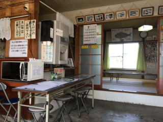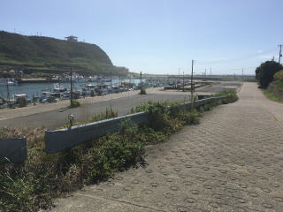 大型の遊漁船でひろびろしたキャビン、トイレも完備です。 太幸丸の休憩所です。 港の大駐車場です。坂を下りてすぐです。