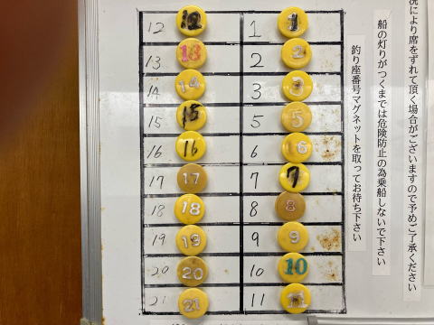 2.船宿内に釣り座ボードがありますので