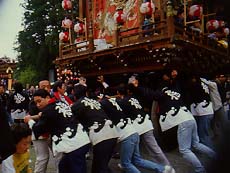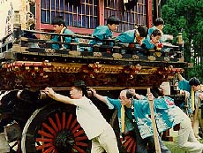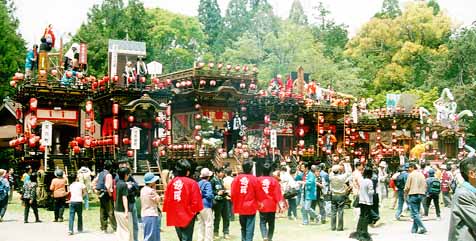曳山が宮入し、11時頃には曳山が勢揃いします。
