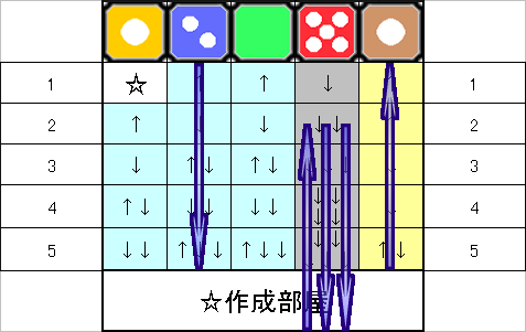各『部屋』ごと、この『青い矢印』を手動通路速算表で照らし合わせてみます。