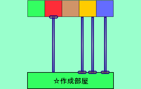 この場合『☆作成部屋』は木部屋ですので左端の『部屋』も木部屋となります。