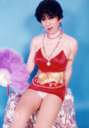 | 派手派手衣装に、ケバケバメイク・・・パンツが見えても気にしない、イケイケ・ナオミよ〜ん! ・・・って、こんなハズでは(ToT) メイクがケバいのはいつものコトだけど、こんなにぱんちゅがモロ見え、だとは・・・。いえ、ホント・・・撮られてる方は分からないんですよぉ(^^; カメラマンの方も何も言ってくれないしィ。そりゃあ、こんなカッコで写真撮ろうっていうんだから、見えたからどうってコトないし、ちょっとくらいは見せる気も・・・ごにょごにょ・・・。ああ〜ん、これでまたナオミのイメージが・・・(ToT) でも、この写真もそうだけど、布を使うだけで画面が映えますでしょ?衣装の派手さもあって、ちょっとゴージャスなカンジ。ゴージャス・ナオミと呼んでちょうだい。オホホホホ・・・<かなりヤケ(^^; |