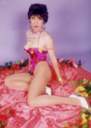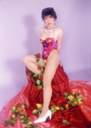 | コレは背景がオレンジ色だったせいで、なんだか肌が青白くなってしまいました。何でもオレンジ色のバックはプロの方でも撮影が難しいとか・・・なんでそういうの使うかな〜(ToT) ナオミの数ある写真の中でも、このときのメイクと髪型は一番のお気に入り、なだけに惜しまれます^^; 翌々週、この背景が取り替えられてから「トロピカル」が撮影されました。 |