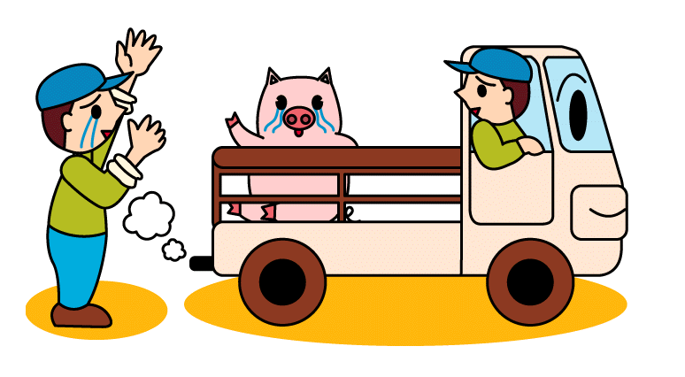 交配(夫婦生活)→分娩(出産)→哺育(保育)→肥育(思春期)→出荷(成人式)→食卓(就職)